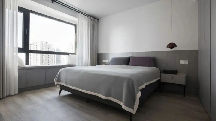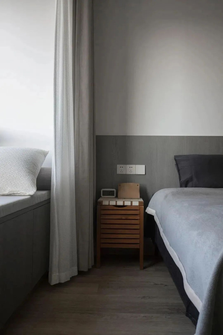 主卧:灰色调定温柔调,细节里藏着舒适感