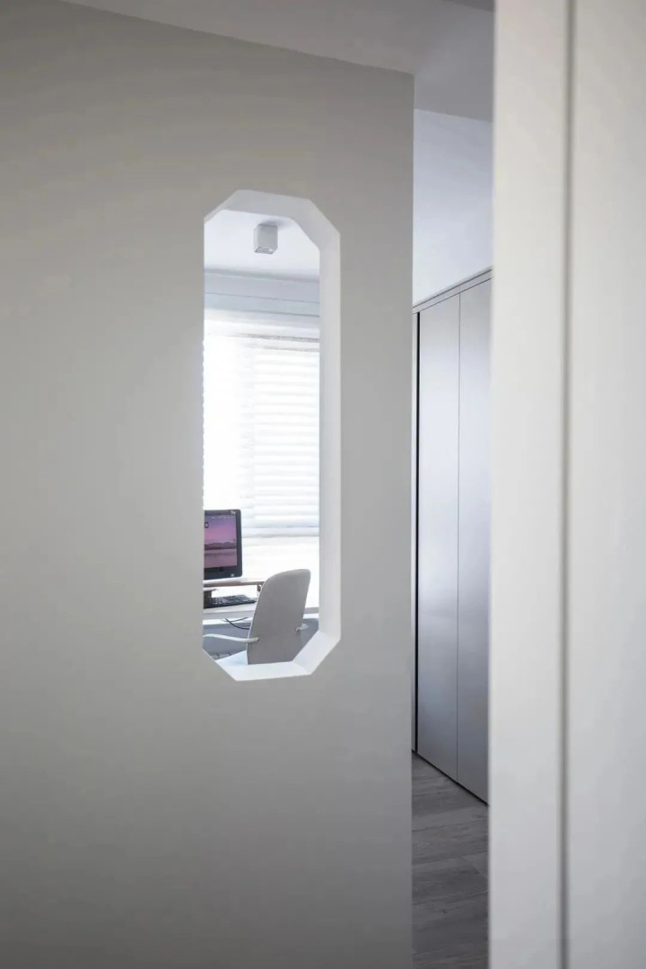 主卧与书房之间,用一面镂空隔墙隔开,既划分了空间,又没挡住光线,隔墙的镂空设计还添了些趣味性。