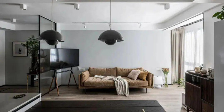 可移动的电视支架灵活实用,想看电视时调整角度就好;客厅与其他区域之间,用长虹玻璃屏风做半隔断,既不挡光,又悄悄划分了空间,整个客厅简约大方,又透着藏不住的格调。
